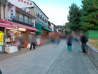 大社の入り口付近には屋台が立ち並んでいました。