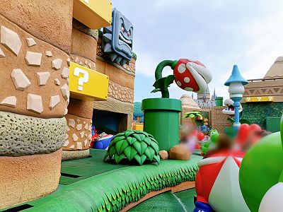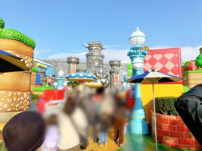 入場ゲートを通り、マリオのあるニンテンドーワールドに向かいます。