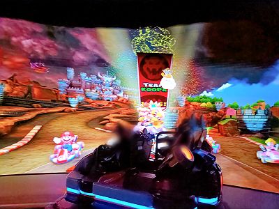 実際、ハチャメチャライドに乗ったところ、巨大ドームスクリーンに映し出される映像が