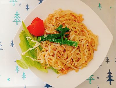 タイビーフンの麺だけだと1食31円、それにもやしや冷凍エビ、玉子を加えても