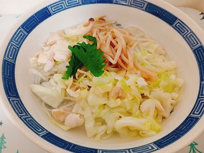 スープは鶏ガラの素を小さじ1にお湯を注ぎました。