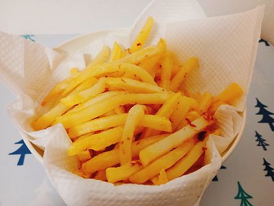 仕上げにポテトに塩を振ったらできあがり~!